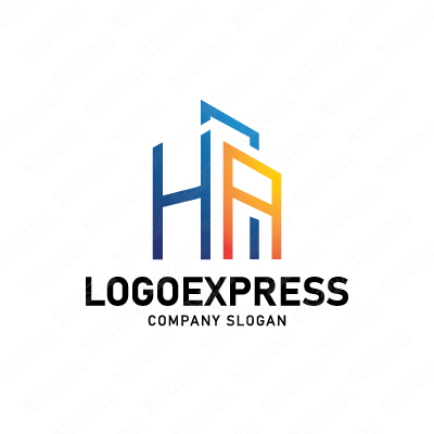 HとAと建物のシンプルでスタイリッシュなロゴ [3230]