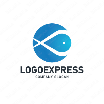 魚をシンプルな線で描いたおしゃれなロゴ [3244]