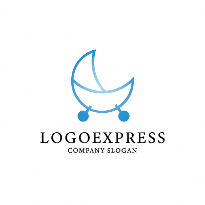 月と乳母車の可愛いロゴ [3455]