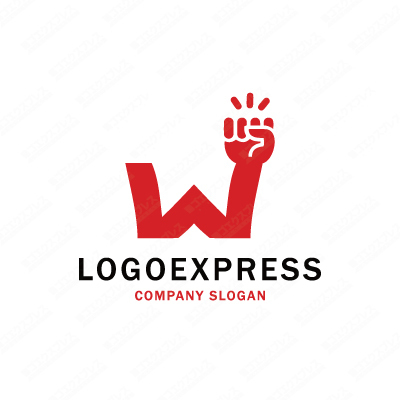 Wと力こぶのエネルギッシュなロゴ [3810]