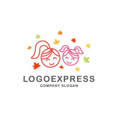 笑顔の女の子と紅葉のロゴ [4191]