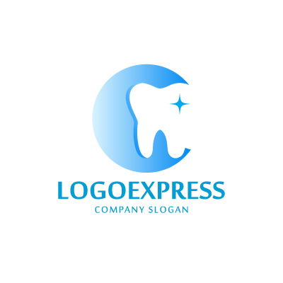 青い円は、清潔感、信頼感、そして安心感を表現しています。歯は、健康、美しさ、そして笑顔を象徴しています。キラキラ光る星は、美しく輝く笑顔、そして歯科治療の技術の高さを表現しています。