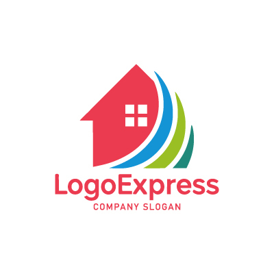家とカラフルな線のロゴ [4360]