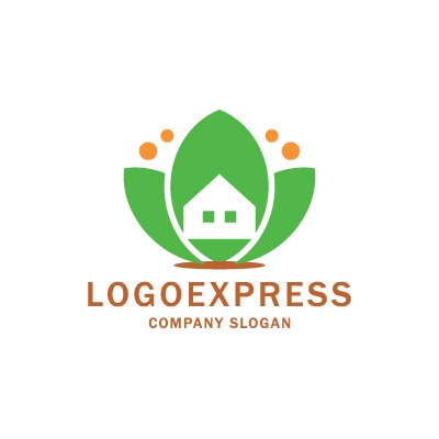 緑の葉っぱと家のロゴ [4429]