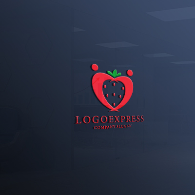 ハートの中にイチゴのイラストを描いたロゴです。赤いイチゴは愛情、幸福、そして健康を、ハートは愛情、絆、そして温かさを象徴しています。2つの緑色の丸は、人々を表し、2人がイチゴを分かち合っている様子は、愛情、家族、そしてコミュニティを連想させます。シンプルながらも温かみのあるデザインで、食品、飲食、農業、福祉、教育など、幅広い業界に適しています。