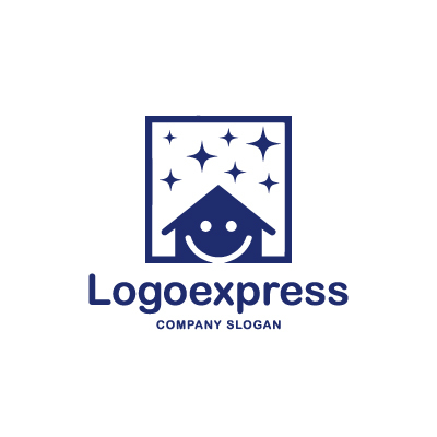 シンプルな四角形の中に、笑顔のマークの家と、星が描かれたロゴです。家のマークは安心感、安定感、そして温かさを、星は希望、夢、そして未来を象徴しています。ブルーの色は信頼、誠実さ、そして清潔さを表し、お客様に安心感と信頼感を与えます。不動産、建築、住宅リフォーム、保育、福祉などの業界に最適です。