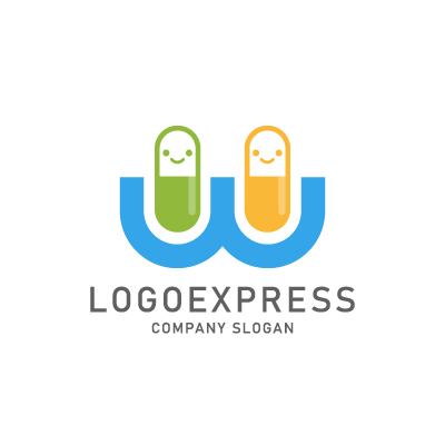 W笑顔の薬カプセルのロゴ [4997]