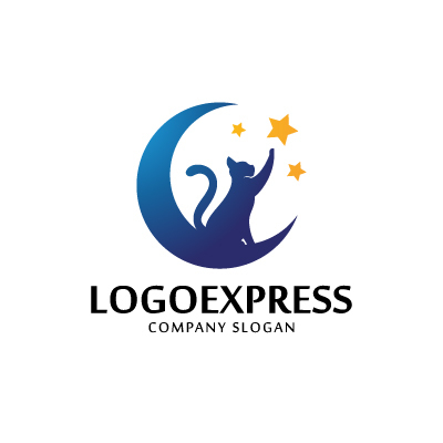 月と星を見上げる猫のロゴ [5201]