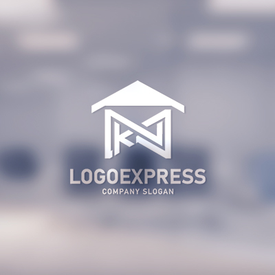 アルファベットの「K」と「N」、そして家を組み合わせた、シンプルで現代的なロゴです。