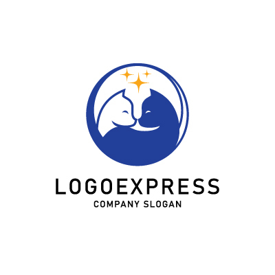 白と青の2匹の猫は、陰陽のように調和し、互いに補完し合う関係性を象徴しています。滑らかな曲線で描かれたシルエットは、優しさと温かみを感じさせます。円は、完全性、永遠、そして調和を表し、2匹の猫を優しく包み込んでいます。3つのオレンジ色の星のきらめきは、希望、夢、そして幸福感を演出しています。全体的に、シンプルながらも洗練されたデザインは、ペット関連、動物病院、セラピー、インテリアなど、愛情、癒し、そして調和をテーマにした企業やブランドに最適です。