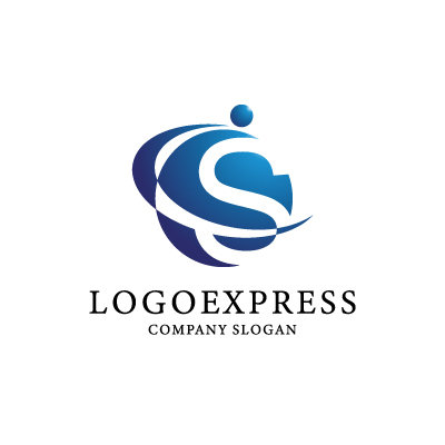 青のグラデーションで描かれた「S」は、地球を周回する軌道をイメージさせ、グローバルな事業展開や、世界への広がりを表現しています。「S」の上部に配置された円は、人を表し、世界中で活躍する人材や顧客との繋がりを象徴しています。円は人々が集まる様子にも見え、コミュニティやチームワークを連想させます。全体的に、躍動感があり、洗練されたデザインは、商社、IT、コンサルティング、グローバル人材関連など、世界を舞台に活躍する企業やブランドに最適です。