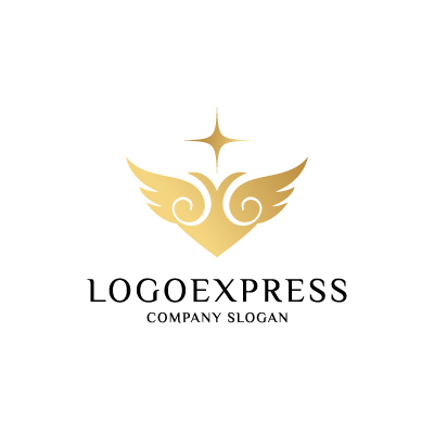 左右対称にデザインされた翼は、飛躍、自由、そして創造性を象徴しています。翼の上に輝く星は、目標、希望、そして成功を表現しており、見る人に明るい未来を連想させます。ゴールドカラーは、高級感、エレガンス、そして豊かさを表現しており、ブランドに特別な印象を与えます。美容、ファッション、ジュエリー、高級ブランドなどの業界に最適です。