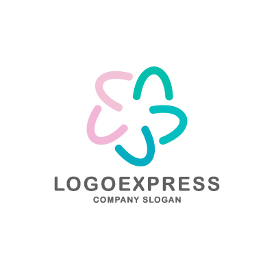 ピンクと青緑の花びらは、それぞれ異なる方向を向き、中心に向かって集まるようなデザインは、求心力と、目標に向かって進む姿勢をアピールしています。特に、花びらの先端が丸みを帯びていることで、柔らかさと優しさを感じさせます。全体的に、シンプルながらもダイナミックなデザインは、企業のビジョンと可能性を感じさせます。このロゴは、美容、ファッション、教育、セラピー、イベント関連など、女性らしさ、優しさ、そして前向きなエネルギーをアピールしたい業界に最適です。