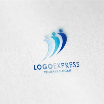 水色、青、濃い青の3つの人型のモチーフは、多様性、調和、そして一体感を象徴しています。右側の人型が最も大きく、リーダーシップと、人々を導く存在を表現しています。3人の人物が右肩上がりに配置されていることで、成長、発展、そして未来への前進をアピールしています。全体的に、シンプルで躍動感のあるデザインは、企業のビジョンと可能性を感じさせます。このロゴは、人材、教育、福祉、NPO、チームワークを重視する企業など、多様性、調和、そして共に成長する姿勢をアピールしたい業界に最適です。