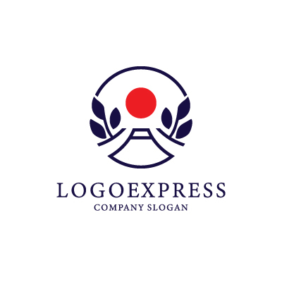 深い青色の輪郭線で描かれた山々は、静けさと力強さを感じさせ、その上に昇る赤い太陽は、希望とエネルギーを象徴しています。中央の赤い円は、日本の日の丸を連想させ、情熱や活力を表現しています。両脇を飾る葉は、自然、成長、調和を表現し、全体的に日本の伝統美を感じさせるデザインです。このロゴは、旅行、アウトドア、自然保護、または日本文化関連など、日本の美しさと精神を大切にする企業やブランドに最適です。ブランドの認知度向上に貢献します。