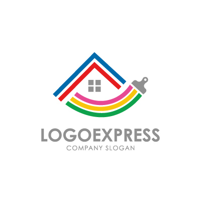 虹のような色使いは、楽しさ、創造性、多様性を表現しています。ペイントブラシは、リフォームやリノベーション、DIYなどのイメージを想起させます。家は、安心、温かさ、家族の絆を象徴し、住宅関連の企業に最適です。