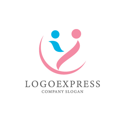 曲線は愛情と調和を象徴し、親子の絆を表しています。ピンク色は女性らしさや優しさを、水色は信頼や誠実さを表し、安心感を与えます。保育園、幼稚園、子育て支援、医療関連、福祉関連の業界に最適です。