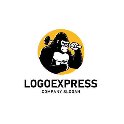 ゴリラの筋肉質な体躯と真剣な表情は、強さ、決意、そして信頼感を表現しています。イエローの円形背景は、明るさ、エネルギー、そして活力を与え、ロゴ全体のインパクトを強調します。建設業、リフォーム業、製造業、スポーツ関連など、力強さや信頼感が求められる業界に最適です。