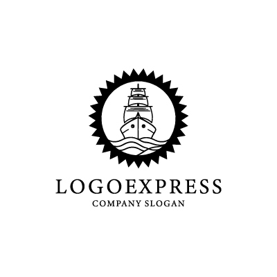 円の中に航海船を配置し、その下には波をデザインすることで、船旅や冒険、そして海の広大さを表現しています。黒色のラインだけで表現することで、シンプルながらも力強く、そして洗練された印象を与えています。旅行代理店、海運業、観光業、または歴史や文化に関連する企業に最適です。