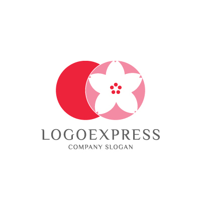 円形の中に桜の花を配置し、シンプルながらも洗練されたデザインに仕上げています。ピンク色は優しさ、美しさ、そして幸福感を表現し、見る人にやすらぎと癒しを与えます。赤い円は力強さ、情熱、そして日本の伝統を表現し、印象的なアクセントとなっています。和風、和菓子、美容、ウェディング、観光などの業界に最適です。