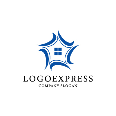 幾何学的な形状と動きのある曲線は、バランスとダイナミズムを表現しています。ブルーは信頼感とプロフェッショナリズムを象徴しており、企業に安心感と安定感を与えます。不動産、建築、インテリアデザインなどの業界に最適です。