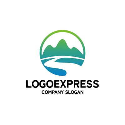 山は、目標、安定、そして成長を象徴し、企業が困難を乗り越え、頂点を目指す姿勢を表します。道は、進歩、機会、そして未来への旅を象徴し、企業が成長と発展を続けていくことを示唆します。円は、包容力、調和、そしてグローバルな視点を意味し、企業が世界中で活動していることを示唆します。緑から青へのグラデーションは、自然、信頼性、そして爽やかさを象徴し、企業の自然環境への配慮や誠実さを表現しています。アウトドア関連企業、旅行会社、物流会社、環境保護団体など、挑戦、成長、そして信頼性をアピールしたい業界に最適です。