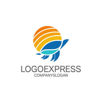 ウミガメは、長寿、忍耐力、そして安定を象徴し、企業が持つ持続可能性と堅実な歩みを表します。太陽は、エネルギー、活力、そして成長を象徴し、企業が未来に向かって明るく進む姿勢を表します。波をモチーフにしたラインは、流動性、変化、そして柔軟性を象徴し、企業が環境の変化に柔軟に対応できることを示唆します。オレンジ、青、水色の組み合わせは、活力、信頼性、そして爽やかさを象徴し、顧客に親しみやすさと安心感を与えます。旅行会社、海運会社、環境保護団体など、安定性、信頼性、そして持続可能性をアピールしたい業界に最適です。