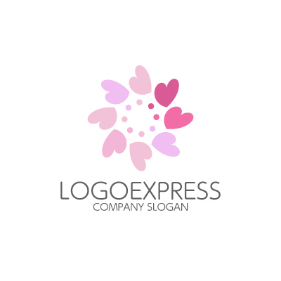 ピンク色の濃淡が、優しさや愛情を表現し、お客様に温かい印象を与えます。円形に配置されたハートは、繋がりや調和を象徴し、親しみやすい雰囲気を演出します。結婚相談所、ブライダル、美容関連、幼稚園、保育園、ベビー用品などの業界に最適です。
