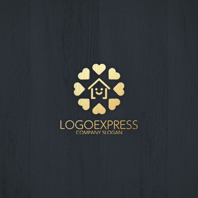 ハートで囲まれた、笑顔の家をモチーフにしたロゴです。