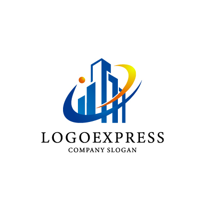 高層ビルは企業や団体の成長と安定性を、軌道はスピード感とダイナミックさを表現しています。青とオレンジの組み合わせは、信頼性、プロフェッショナリズム、活力、そして創造性を象徴し、企業のバランスの取れた力を表現します。建築会社、不動産会社、コンサルティング会社、テクノロジー関連企業など、安定性、成長、そして革新性をアピールしたい業界に最適です。