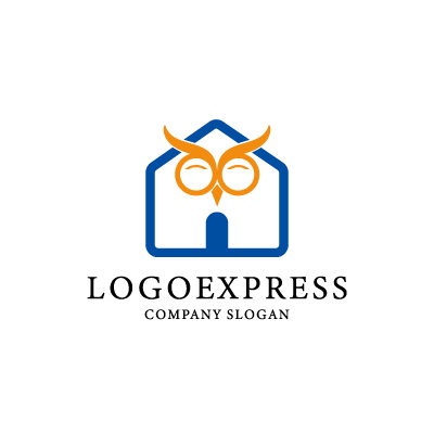 フクロウは、知恵、知識、そして洞察力を象徴し、企業が持つ高い専門性と知的なアプローチを表します。家は、安心感、温かさ、そして家庭的な価値を象徴し、顧客に提供する安全で信頼できるサービスを表します。直線で構成されたデザインは、明確さ、安定性、そして信頼性を象徴し、企業の持つ誠実さと堅実なイメージを表現します。青とオレンジの組み合わせは、プロフェッショナリズム、信頼性、活力、そして創造性を象徴し、企業がバランスの取れた力強さを持っていることを表します。教育機関、法律事務所、コンサルティング会社、不動産会社など、知性、信頼性、そして安心感をアピールしたい業界に最適です。