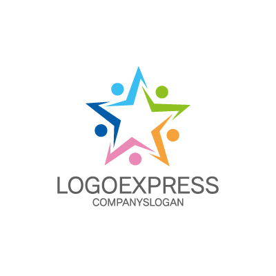 星は輝きや夢を、人型のシルエットはチームや連帯を象徴しています。カラフルな配色が、多様性、活気、そして楽しさを表現し、お客様に希望と興奮を感じさせます。教育、人材、福祉、イベント、NPO、スポーツなどの業界に最適です。