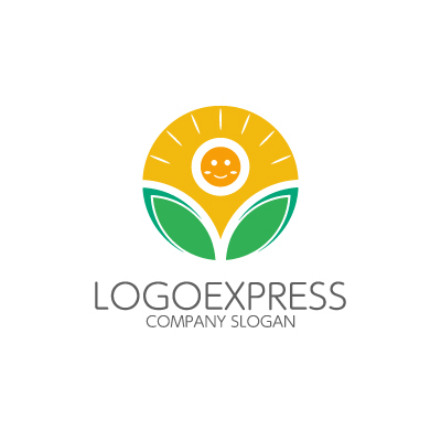 太陽は、活力、希望、そして成長を象徴し、企業が持つ明るく前向きな姿勢と未来への展望を表します。葉は、自然、成長、そして生命力を象徴し、企業が環境に配慮し、持続可能な発展を目指す姿勢を表します。笑顔は、親しみやすさ、幸福感、そして温かさを象徴し、企業が顧客に対して温かい印象を与えることを示唆します。緑と黄色の組み合わせは、調和、成長、そしてポジティブなエネルギーを象徴し、企業の持つ明るく元気なイメージを表現します。子供向け商品、教育機関、環境保護団体など、親しみやすさ、成長、そしてポジティブなエネルギーをアピールしたい業界に最適です。