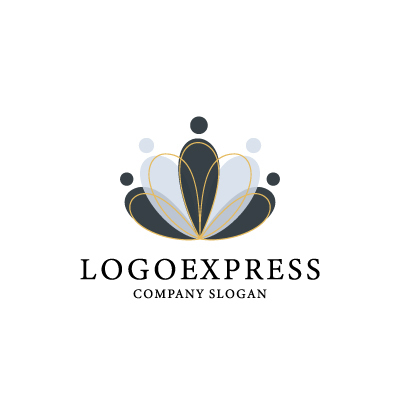 ロータスは、純粋さ、美しさ、そして成長を象徴し、企業が持つ洗練されたイメージと発展への想いを表します。花びらの先端に配置された丸は、人々を表し、繋がり、調和、そしてコミュニティを象徴し、企業が顧客や社会との良好な関係を築き、温かい繋がりを大切にする姿勢を表します。ダークグレーとライトグレーとゴールドの組み合わせは、洗練されたプロフェッショナリズム、高級感、そして信頼性を象徴し、企業の洗練されたイメージと顧客への安心感を高めます。美容関連企業、ウェルネス企業、スパ、ジュエリー関連企業など、洗練された美しさや高品質をアピールしたい業界に最適です。