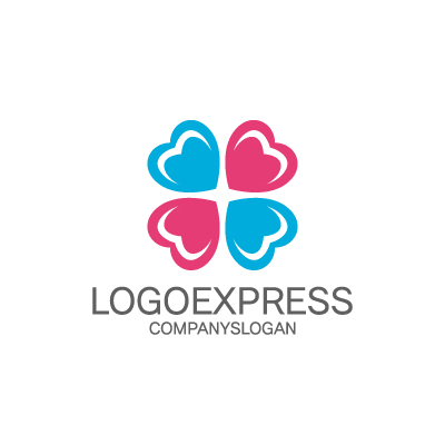 ハートは、愛情、温かさ、そして幸福を象徴し、企業が顧客や社会に対して、温かい感情と思いやりを持って接することを表します。四つ葉のクローバーは、幸運、希望、そして信頼を象徴し、企業が顧客に幸運をもたらし、信頼される存在であることを示唆します。青とピンクの組み合わせは、プロフェッショナリズム、信頼性、そして愛情、優しさを象徴し、企業のバランスのとれた魅力を表現します。医療機関、福祉団体、教育機関、ブライダル関連企業など、愛情、幸福、そして信頼性をアピールしたい業界に最適です。