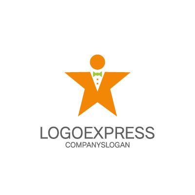 星は、希望、夢、そして卓越性を象徴し、企業が持つ未来への展望と成功への強い意志を表現します。タキシードを着た人物は、洗練、プロフェッショナリズム、そして信頼性を象徴し、企業が顧客に対して洗練されたサービスを提供することを示唆します。オレンジと緑の組み合わせは、創造性、活力、そして調和を象徴し、企業のバランスの取れた魅力を表現します。エンターテイメント会社、イベント企画会社、高級ブランド、ホテルなど、創造性、プロフェッショナリズム、そして高級感をアピールしたい業界に最適です。