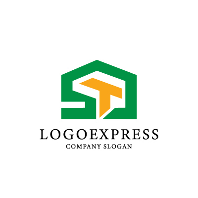 家は、安心感、温かさ、そして家庭的な価値を象徴し、企業が顧客に対して、安全で快適な場所を提供することを示唆します。イニシャル「S」と「T」は、企業やブランドの個性を表し、独自性と識別性を強調します。緑とオレンジ色の組み合わせは、活力、自然、そして創造性を象徴し、企業が持つ創造性と未来への希望を表現します。不動産会社、建設会社、インテリアデザイン会社、園芸店など、安心感、成長、そして創造性をアピールしたい業界に最適です。