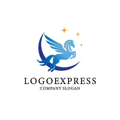 ペガサスは、創造性、自由、そして無限の可能性を象徴し、企業が持つ革新的な発想と、未来への飛躍を目指す姿勢を表現します。三日月は、希望、夢、そして神秘的な魅力を象徴し、企業の持つ洗練されたイメージと、顧客を魅了する力を高めます。青色のグラデーションは、信頼性、プロフェッショナリズム、そして洗練さを象徴し、顧客に安心感と信頼感を与えることを意図しています。テクノロジー関連企業、クリエイティブエージェンシー、エンターテイメント会社など、革新性、創造性、そして夢をアピールしたい業界に最適です。