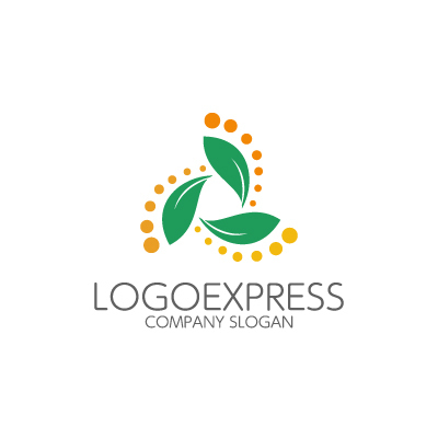 葉は、成長、自然、そして生命力を象徴し、企業が環境に配慮し、持続可能な発展を目指す姿勢を表します。3つの葉が放射状に配置されたデザインは、安定感、調和、そしてバランスを象徴し、企業が持つ多角的な活動と安定した基盤を表します。リサイクルや自然、健康、癒しを連想させるロゴです。リサイクルマークにも見えるデザインは、環境保護への意識をアピールします。オレンジのドットは、つながり、連携、そしてコミュニティを象徴し、企業が持つ連帯感と社会貢献への想いを表現します。ウェルネス関連企業、環境保護団体、農業関連企業など、自然、調和、そして社会貢献をアピールしたい業界に最適です。