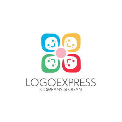 人が円形に連なっている様子は、調和、結束力、そしてコミュニティを象徴し、企業がチームワークを重視し、顧客や社会との繋がりを大切にする姿勢を表します。四角形は、安定性、信頼性、そして構造を象徴し、企業がしっかりとした基盤を持っていることを表します。赤、青、緑、黄色の組み合わせは、多様性、創造性、活力、そして幸福感を象徴し、企業の持つ多面的な魅力とポジティブなエネルギーを表現します。教育機関、NPO法人、福祉団体、医療機関など、共感性、多様性、そして社会貢献をアピールしたい業界に最適です。