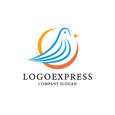 鳥は自由や平和、希望を象徴し、星は目標や夢を表現しています。デザイン全体はシンプルで洗練されており、親しみやすい印象を与えます。青色は信頼性や誠実さを表し、オレンジ色は温かさや活力を表現しており、幅広い業界に適用可能です。航空会社、旅行代理店、広告代理店、コンサルティング会社など、自由な発想、信頼性、そして多様な顧客を繋ぐことをアピールしたい業界に最適です。