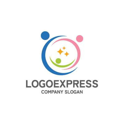 人々が手を取り合う様子は、連帯感、協力、そしてコミュニティを象徴し、企業がチームワークを重視し、顧客や社会との繋がりを大切にする姿勢を表します。放射状に広がるデザインは、活気、エネルギー、そして多様性を象徴し、企業が持つ多角的な活動と無限の可能性を示唆します。青と緑は、信頼性が高く、プロフェッショナルで、自然と調和したクリーンな企業イメージを伝えます。ピンクとオレンジは、暖かさと親しみやすさを感じさせます。教育機関、NPO法人、福祉団体、医療機関など、共感性、多様性、そして社会貢献をアピールしたい業界に最適です。