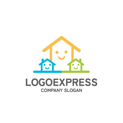 イエローは明るさ、信頼感、幸福感を表現しています。ブルーは安定感、誠実さ、知性を表し、人々に安心感を与えます。グリーンは成長、調和、自然を象徴し、企業が持続可能な発展を目指していることを示します。老若男女問わず親しみやすいデザインで、教育機関や医療機関など、地域社会への貢献を重視する企業におすすめです。 不動産、建築、住宅関連企業に最適なロゴです。