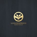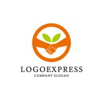 オレンジの円の中に、握手する手と、緑色の葉を配したロゴです。