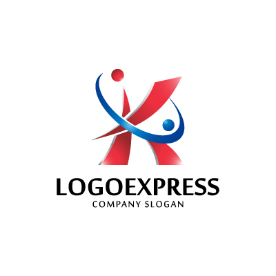 赤い文字は、情熱、エネルギー、そして行動力を象徴し、企業が持つ活力と推進力を表現します。青色の軌道と人は、つながり、成長、そして目標達成を意味し、企業が顧客とともに発展していく様子を表します。コンサルティング、テクノロジー、教育、あるいは「K」で始まる企業名など、革新性、活力、そして信頼性をアピールしたい企業に最適です。