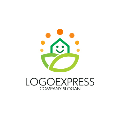 家は、安心、安全、そして幸せな家庭を象徴し、不動産、住宅建設、あるいは家庭用品関連ビジネスに最適です。笑顔は、温かさ、親しみやすさ、そして歓迎の気持ちを表現し、顧客に安心感を与えます。葉っぱは、自然、成長、そして調和を意味し、環境への配慮や持続可能な暮らしをアピールします。オレンジ色の点は、太陽、エネルギー、そして活力を象徴し、企業が持つ明るい未来への希望を表現します。エコ住宅、自然素材を使った家、あるいは家族向けの暖かいサービスなど、安全、快適、そして環境に優しい住まいを提供し、顧客の幸福を願う企業に最適です。