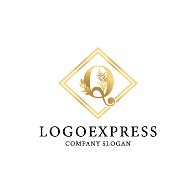 黄金色の装飾的な「Q」とひし形のロゴ [6667]