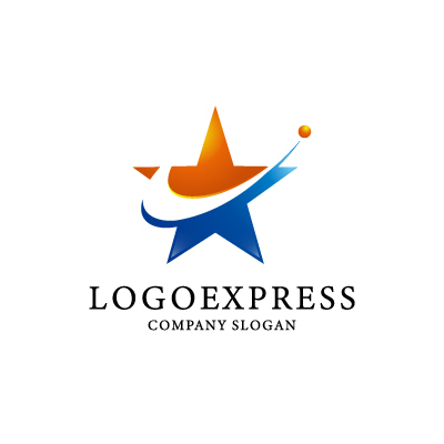星は、目標達成、成功、そして卓越性を象徴し、企業が常に高みを目指す姿勢を表現します。青色は、信頼性、安定性、そしてプロフェッショナリズムを意味し、顧客に安心感を与えます。オレンジ色の輝きは、創造性、エネルギー、そして未来への展望を象徴し、企業が持つ革新的な精神をアピールします。スウィッシュは、スピード、動き、そしてダイナミズムを表現し、企業が目標に向かって力強く進んでいく様子を表します。テクノロジー企業、コンサルティング会社、あるいはスポーツ関連など、目標達成、革新性、そしてスピード感を重視する企業に最適です。