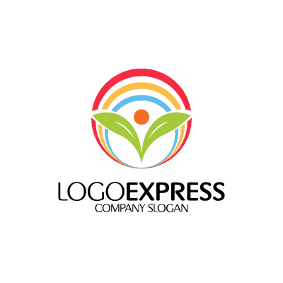 虹色の円と葉と人のロゴ [6682]