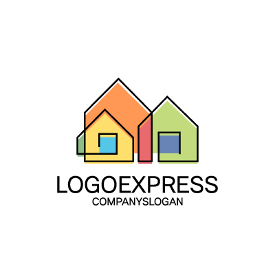 カラフルな重なり合う家のロゴ